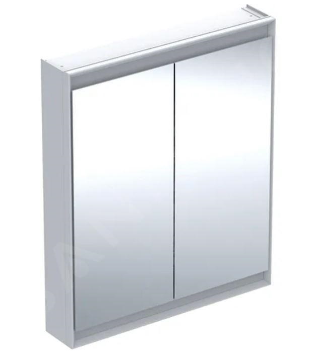 Зеркальный шкаф Geberit ONE с ComfortLight и двумя дверцами, накладной монтаж, 75x90x15 см, алюминий