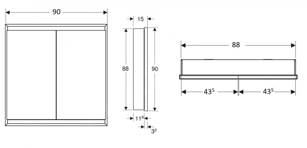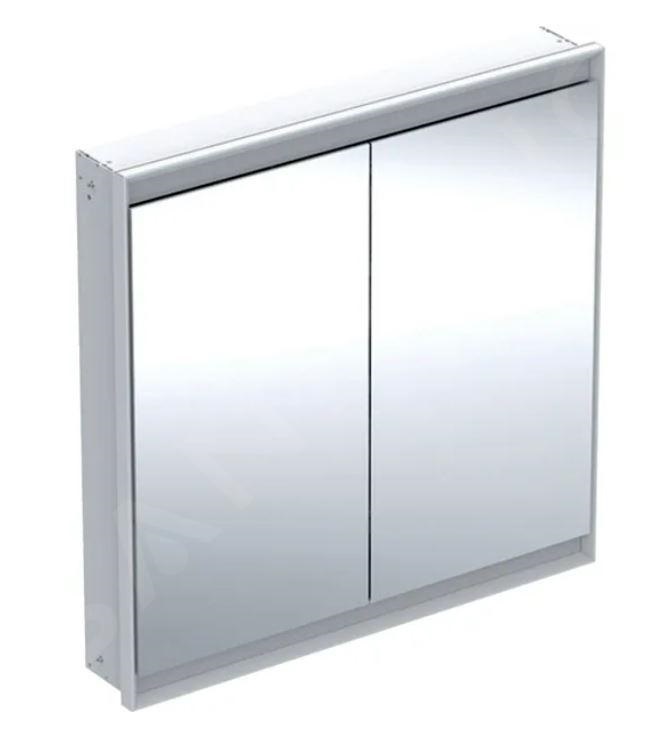Зеркальный шкаф Geberit ONE с ComfortLight и двумя дверцами, скрытый монтаж, 90x90x15 см, алюминий белый