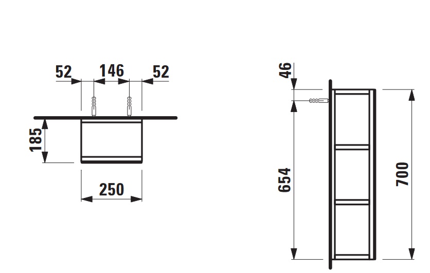 Зеркальный шкафчик Laufen Base 25х18,5х70 см с открытыми полками ДСП темно-коричневый вяз H4029501102631