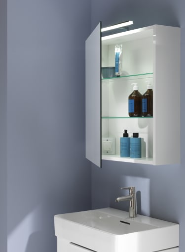 Зеркальный шкафчик Laufen Base 60 см петли слева с подсветкой МДФ/ДСП белый матовый