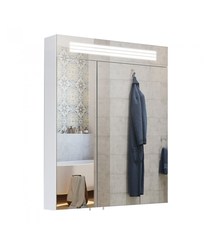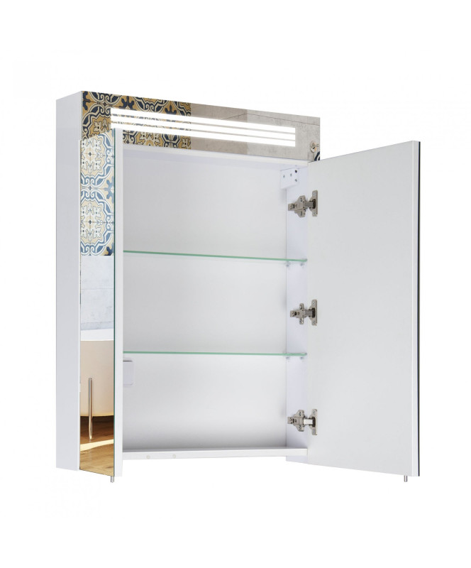 Зеркальный шкафчик Мойдодыр Лагуна ЗШ-60 62,5х82 см с LED-подсветкой ДСП белый глянец 00-00002879