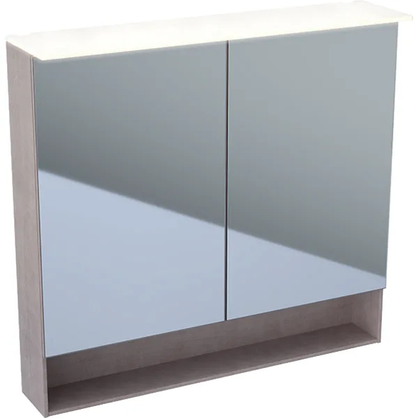 Зеркальный шкафчик подвесной Geberit Acanto 90х83 см с подсветкой две дверцы ДСП дуб мистик/меламин структура дерева