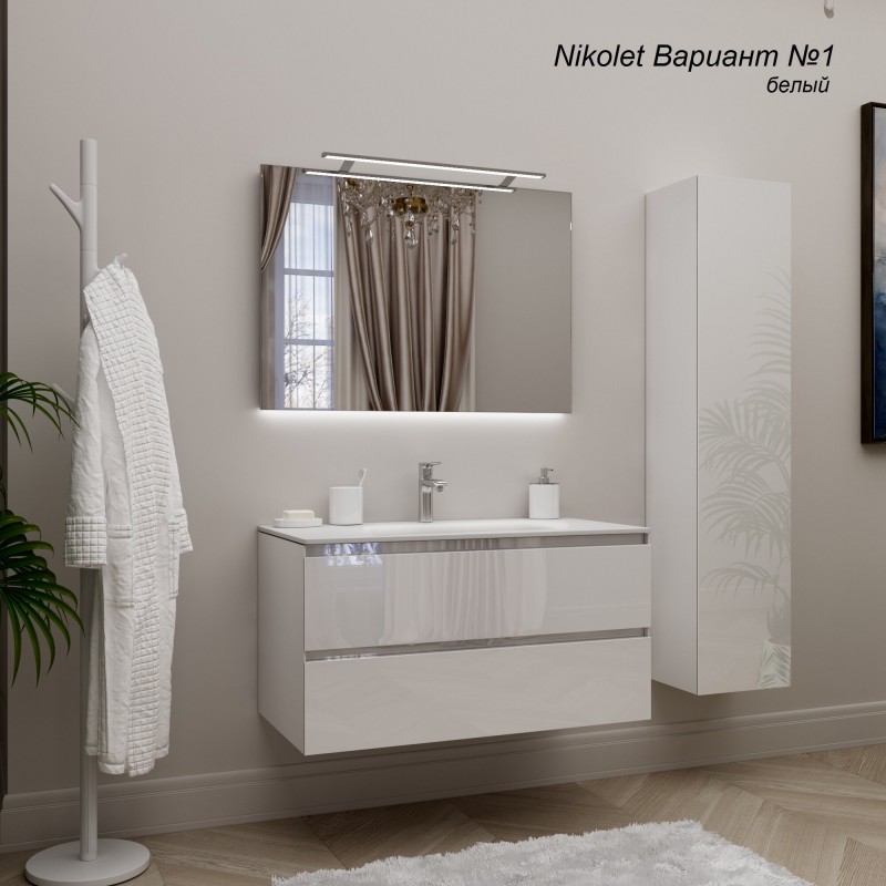 1) Зеркало для ванной Marsan Nikolet 70х80 см со светильником 60 см