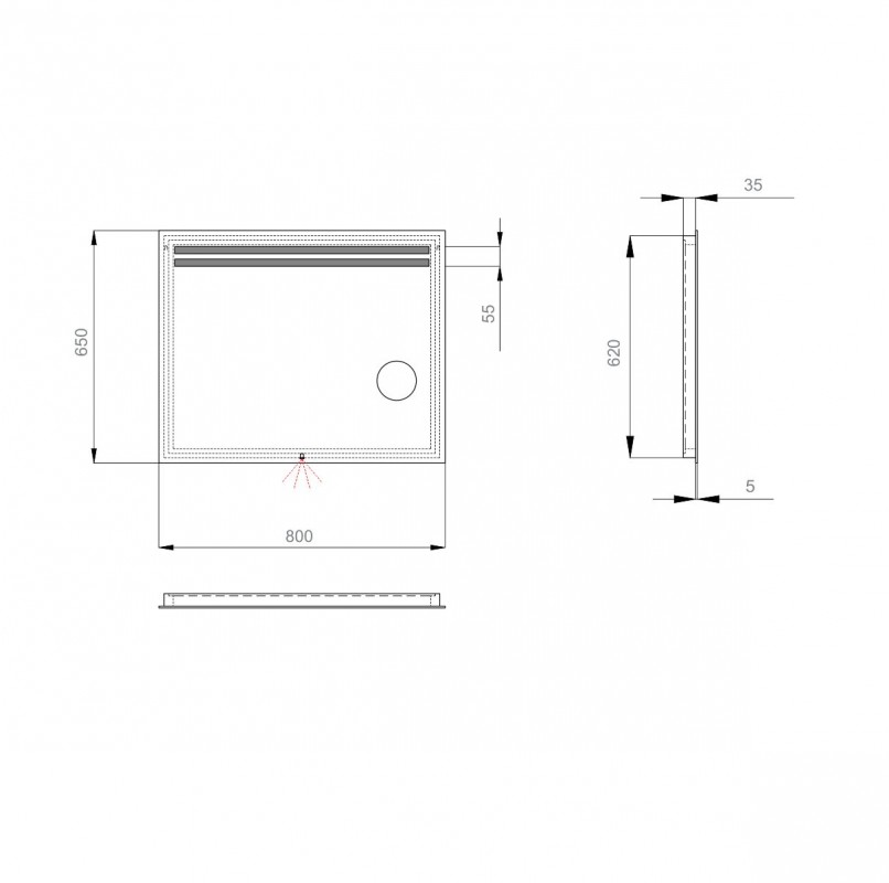 1) Зеркало для ванной Sanwerk Lava Della 80х65 см с LED-подсветкой