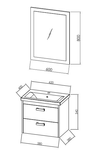 Зеркало и тумба с раковиной Kolpa-san Sara 62