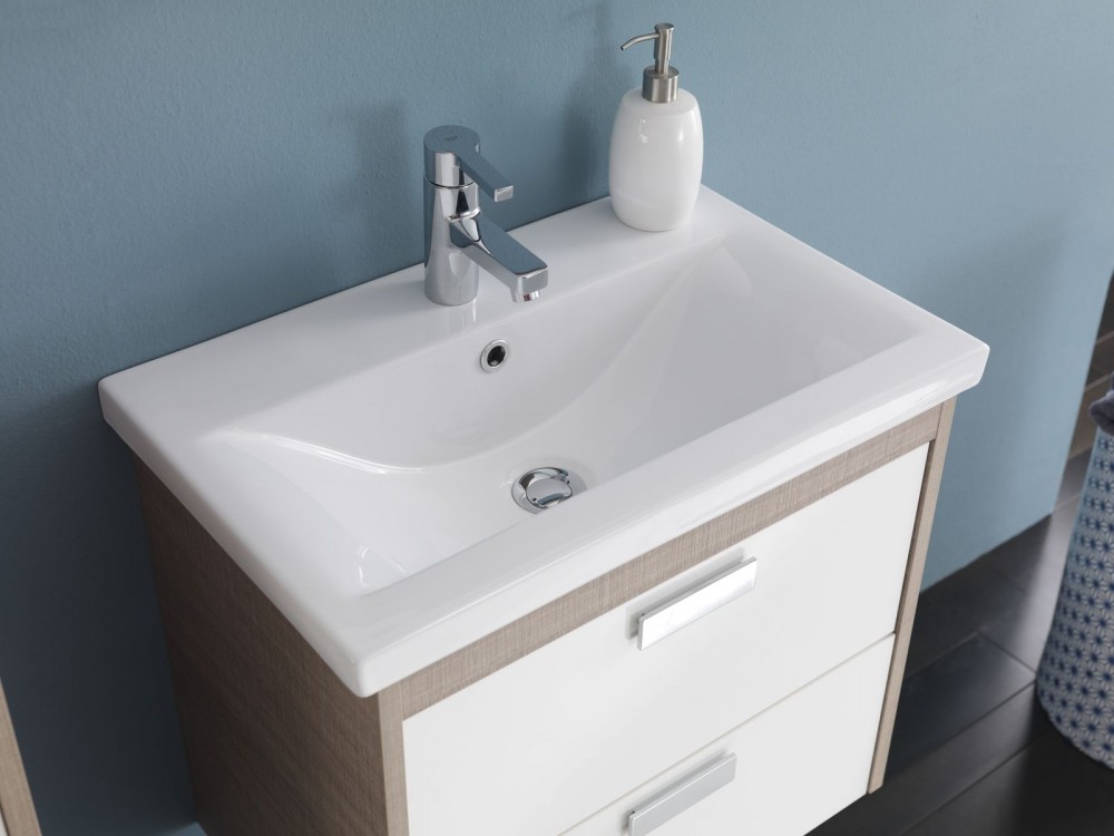 Эффективность пространства. Для лучшего использования пространства под глубокими керамическими умывальниками имеются два просторных выдвижных ящика с бесшумной системой закрытия, которые обеспечивают дополнительное место для ваших самых необходимых принадлежностей.