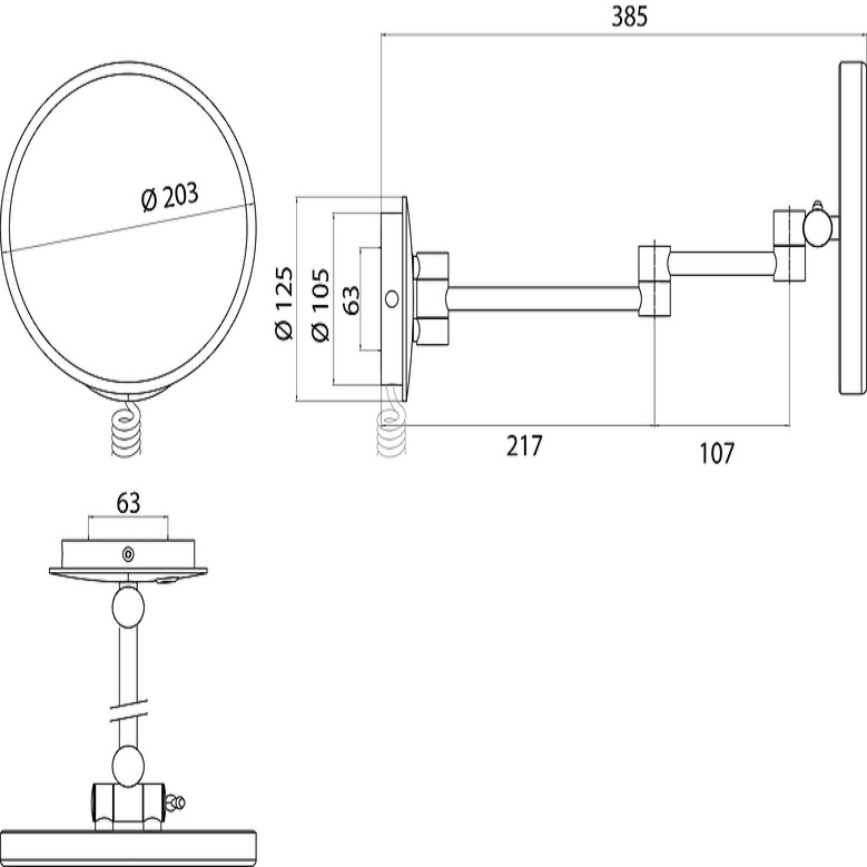 Зеркало настенное с кабелем и вилкой