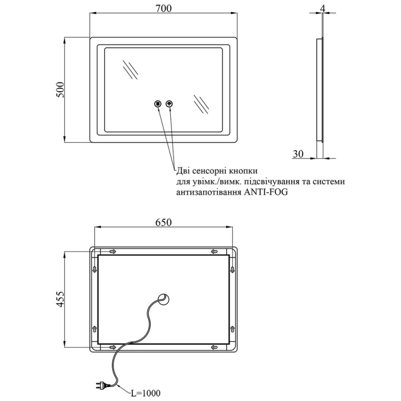 - ANTI-FOG — встроенная система защиты от запотевания, благодаря которой зеркало остается чистым даже после горячего душа.