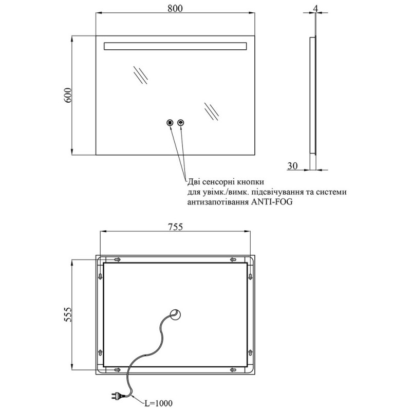 - ANTI-FOG — встроенная система защиты от запотевания, благодаря которой зеркало остается чистым даже после горячего душа.