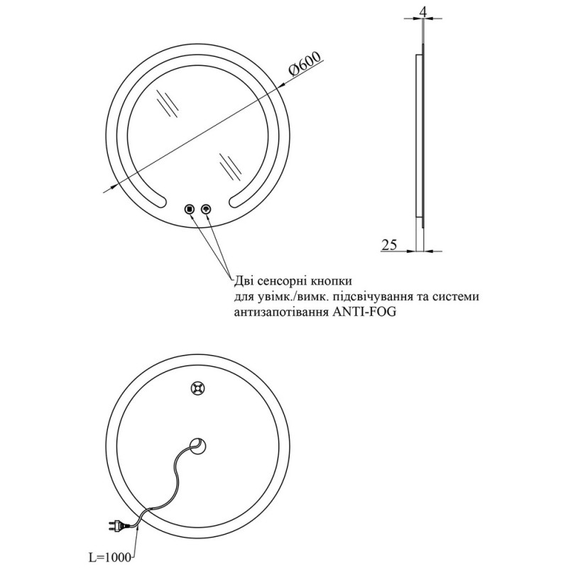 Зеркало Kroner KRP Spiegel R1-6060 ⌀60 см с LED-подсветкой и антизапотеванием CV030041