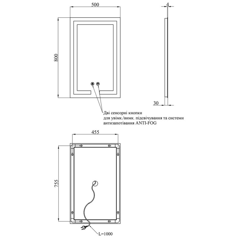 - ANTI-FOG — встроенная система защиты от запотевания, благодаря которой зеркало остается чистым даже после горячего душа.