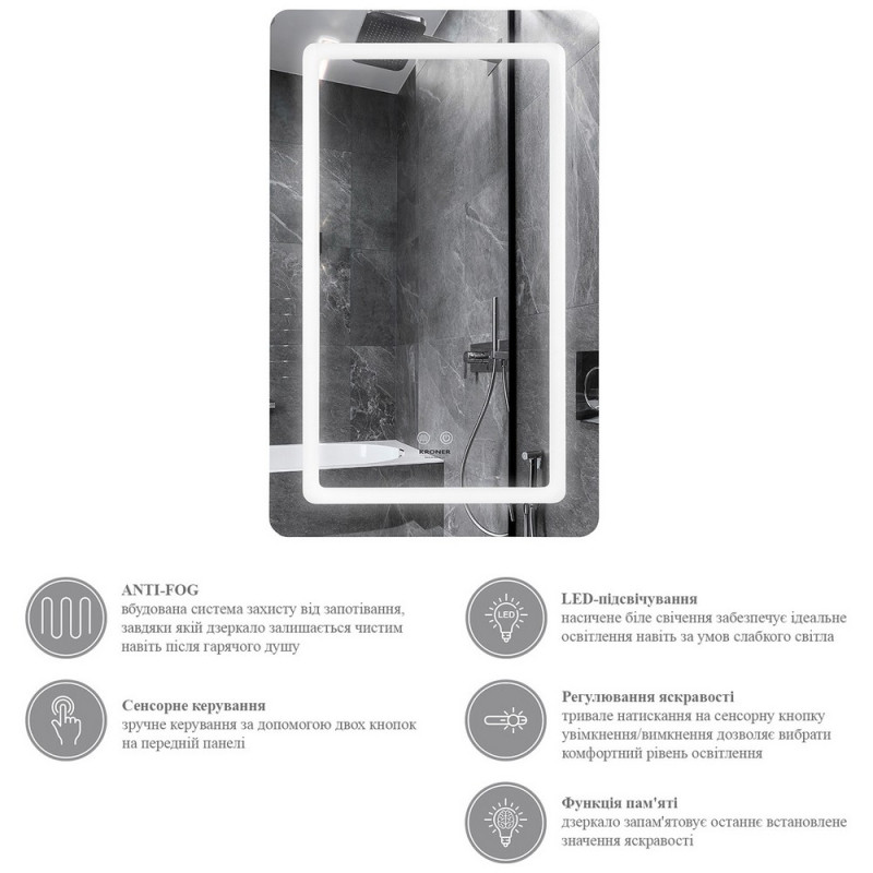 Зеркало Kroner KRP Spiegel VR6-5080 50х80 см с LED-подсветкой и антизапотеванием CV035334
