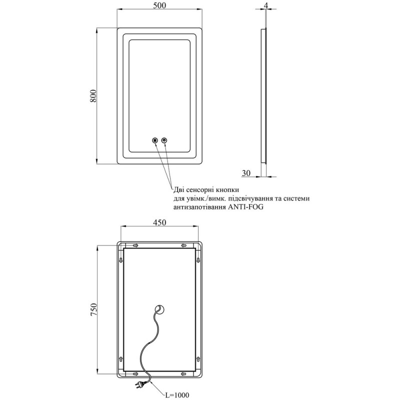 - ANTI-FOG — встроенная система защиты от запотевания, благодаря которой зеркало остается чистым даже после горячего душа.