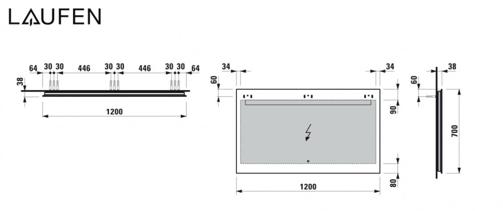 Зеркало в ванную комнату Laufen Leelo 120 см с LED-подсветкой 1 сенсорным выключателем и функцией памяти