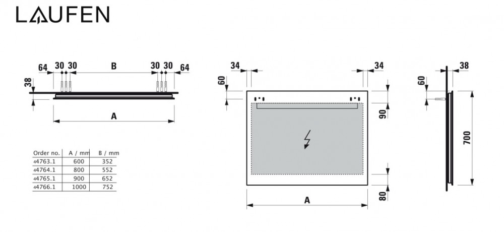 Зеркало в ванную комнату Laufen Leelo 60 см с LED-подсветкой включение от общего выключателя H4476319501441