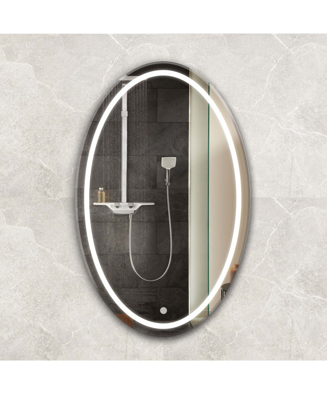 Зеркало оснащено сенсорным выключателем, он находится на корпусе и обеспечивает удобное управление освещением без лишних усилий. Такой подход к управлению позволяет с легкостью создавать необходимую атмосферу в вашей ванне.