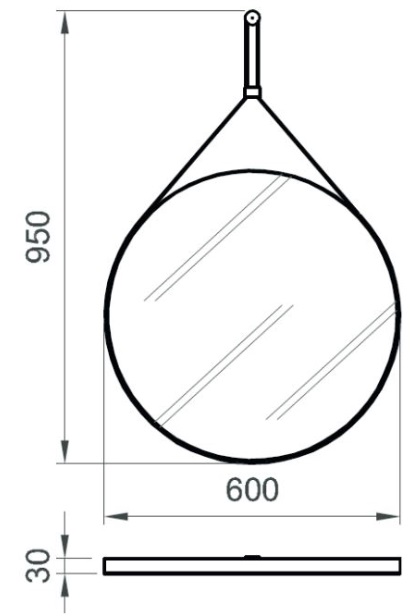 Зеркало в ванную комнату Ponsi Tondo Ø60 рама черная экокожа