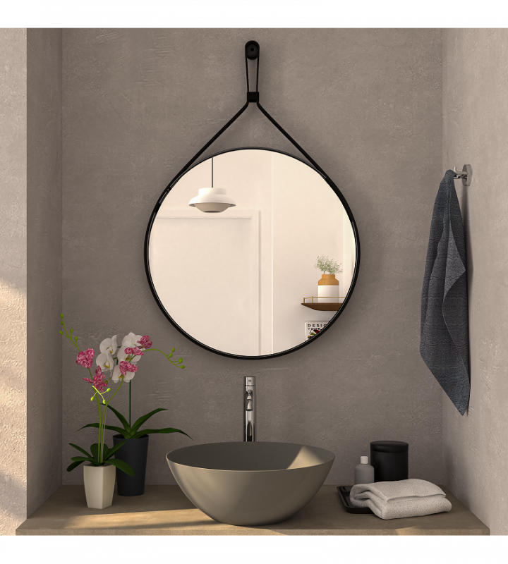 Зеркало в ванную комнату Ponsi Tondo Ø60 рама черная экокожа BESPEPTOND0060