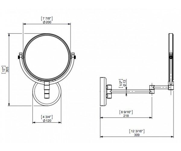 Диаметр зеркальной поверхности 200 мм. Зеркало Contract-Hospitality размещено на подвижном штативе, который сгибается в нескольких местах, позволяя очень точно выбирать местоположение и угол наклона зеркала. Длинна штатива – 20 см. Кроме того, оно вращается вокруг своей оси, а при желании, его можно убрать из «рабочей зоны», прижав вплотную к стене или придвинуть к лицу на необходимое для лучшего обзора расстояние, повернуть горизонтально, вертикально или под любым углом, что очень удобно при уходе за различными зонами лица.
