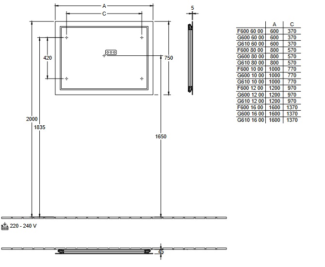 Зеркало в ванную комнату Villeroy & Boch Finion 60х75 см с подсветкой и настенным освещением G6006000