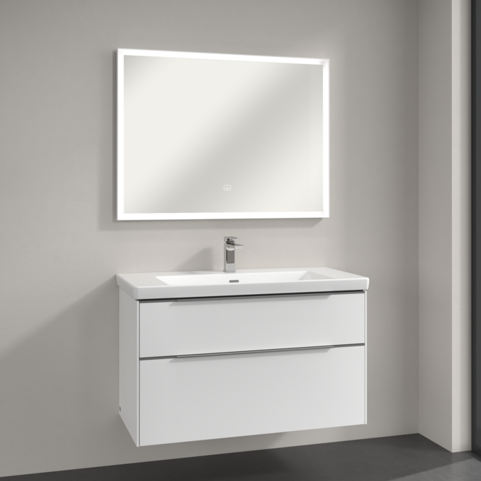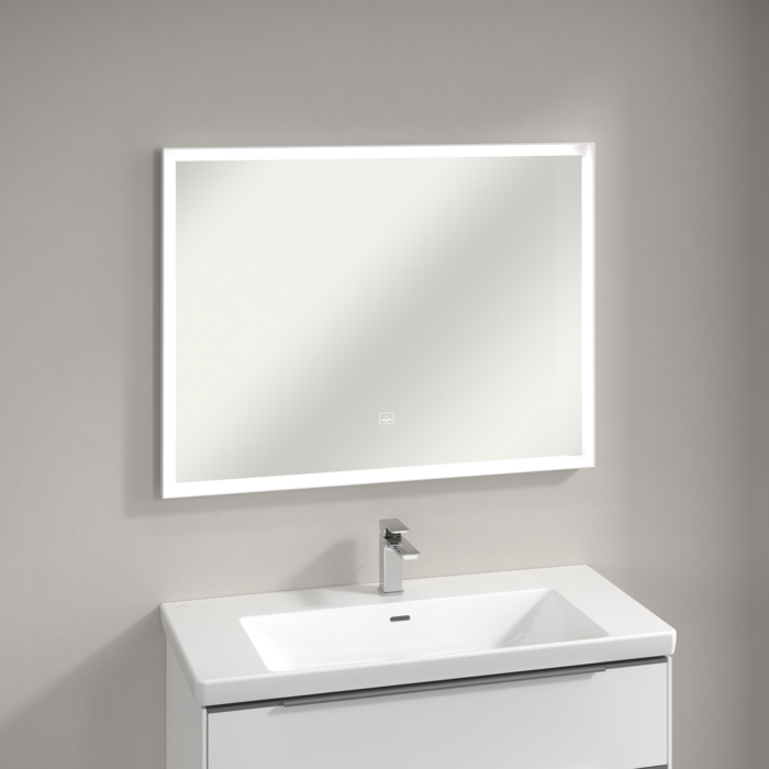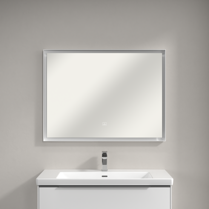 Зеркало в ванную комнату Villeroy & Boch Subway 3.0 100х75 см с подсветкой алюминий белый матовый