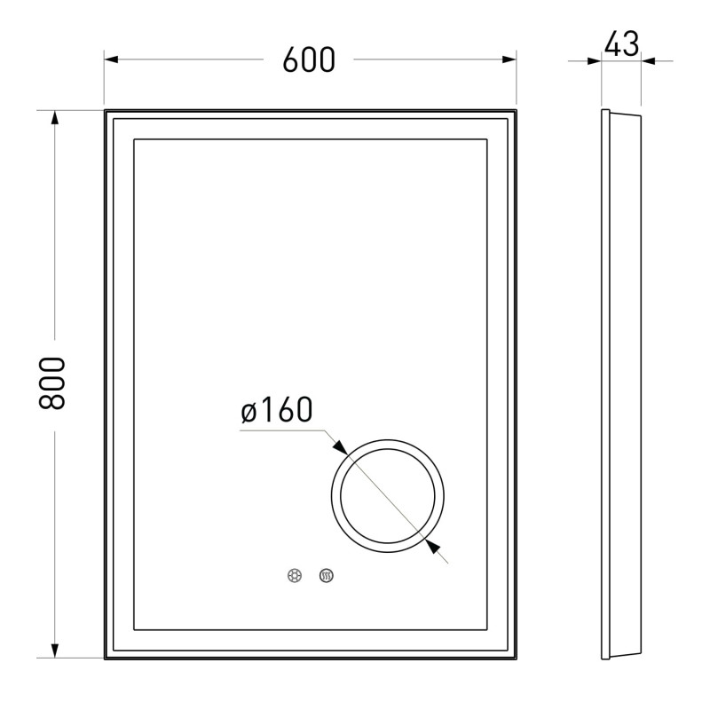 1) Зеркало в ванную комнату Volle 60х80 см подсветка/диммер/подогрев/линза 5X