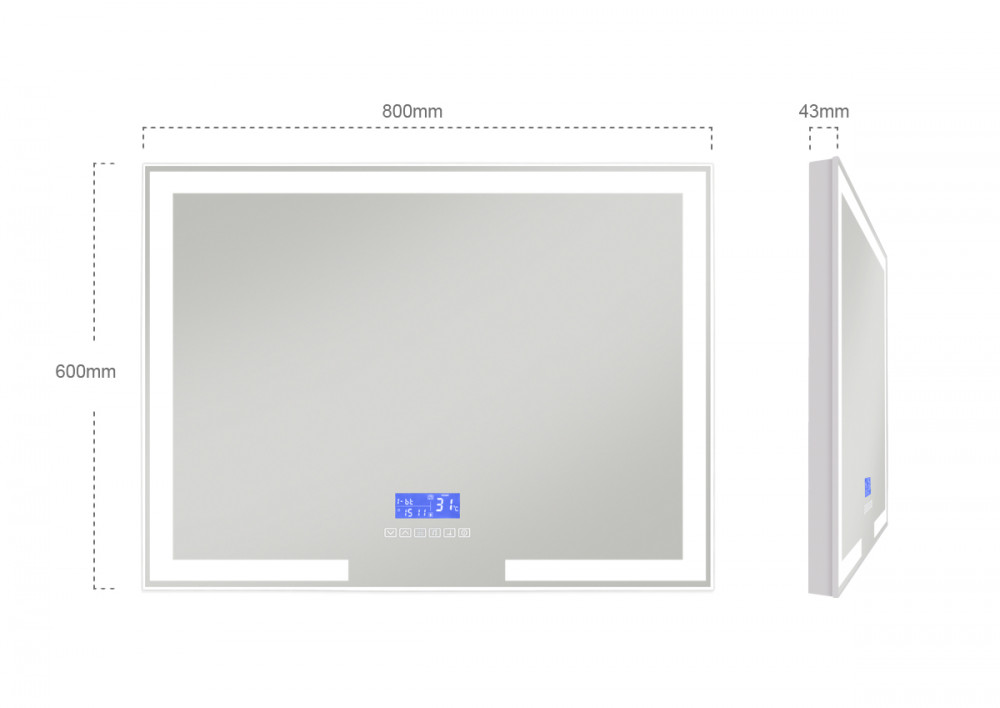 1) Зеркало в ванную комнату Volle 80х60 см подсветка/подогрев/bluetooth/часы
