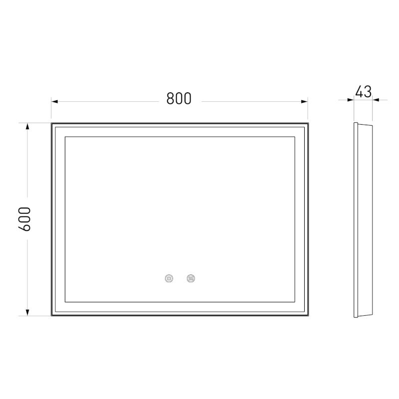 1) Зеркало в ванную комнату Volle 80х60 см с подсветкой диммером и подогревом