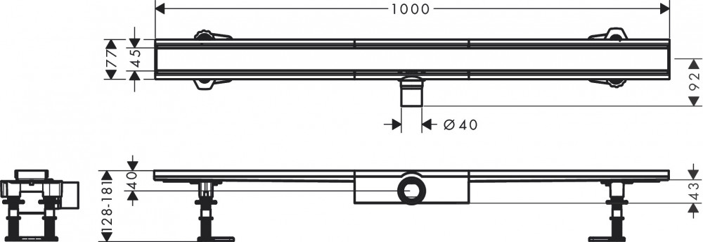 Желоб водосточный Hansgrohe RainDrain Compact для плоской установки 1000 мм матовая нержавеющая сталь 56170800