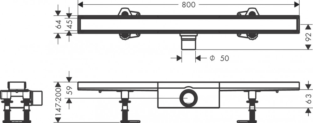 Желоб водосточный Hansgrohe RainDrain Compact для стандартного монтажа 800 мм под плитку нержавеющая сталь