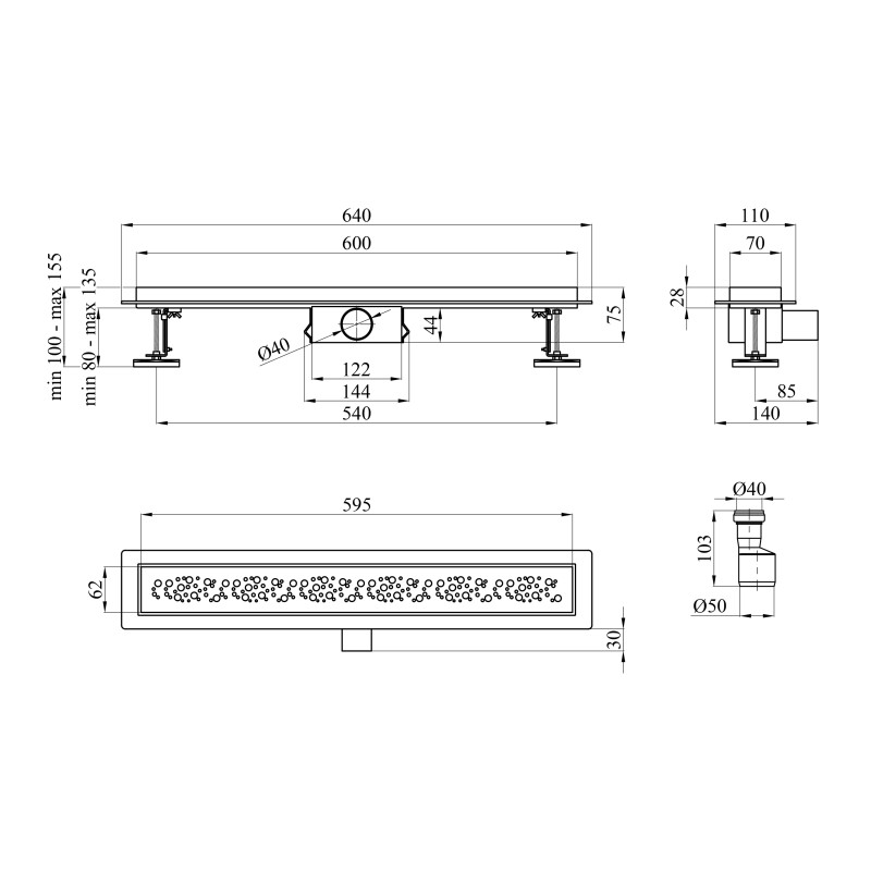 Желоб водосточный Kroner KRP Eifel-M60Muster с решеткой 600 мм нержавеющая сталь CV034165