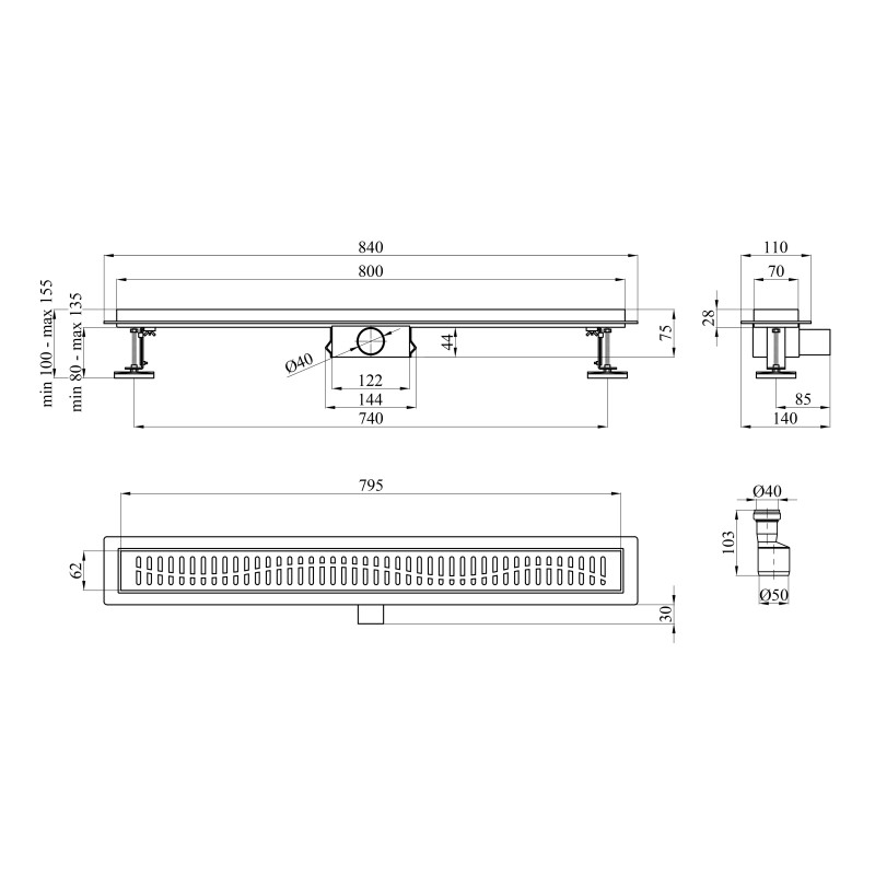 Желоб водосточный Kroner KRP Eifel-W80Welle с решеткой 800 мм нержавеющая сталь CV034164
