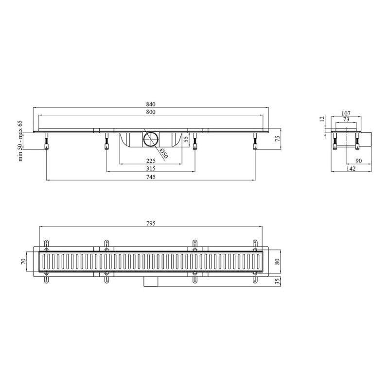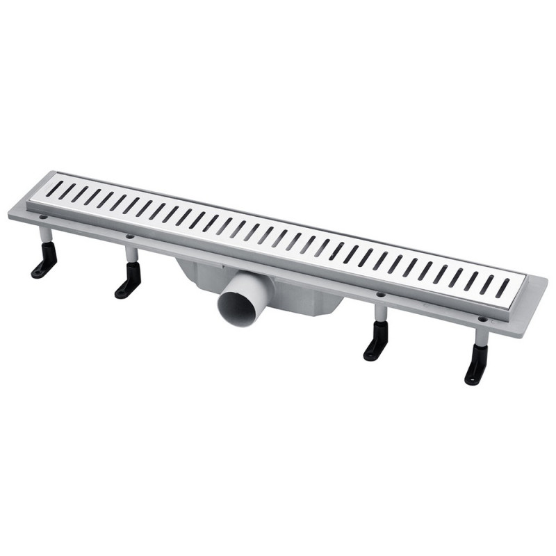 Линейный трап Kroner KRP Harz S80 Sektion с декоративной решеткой размером 800х73 мм из нержавеющей стали выполняет функцию водоотвода из душевых кабин без применения душевого поддона на уровне с полом. Корпус трапа изготовлен из устойчивого к агрессивным средам прочного пластика. Также душевой трап обладает сухим гидрозатвором диаметром 50 мм, который надежно защитит от проникновения неприятных запахов из канализационных труб. Конструкция лотка дает возможность без лишних трудностей почистить изделие.