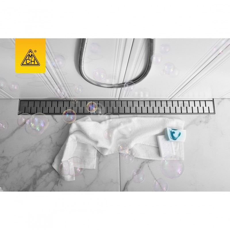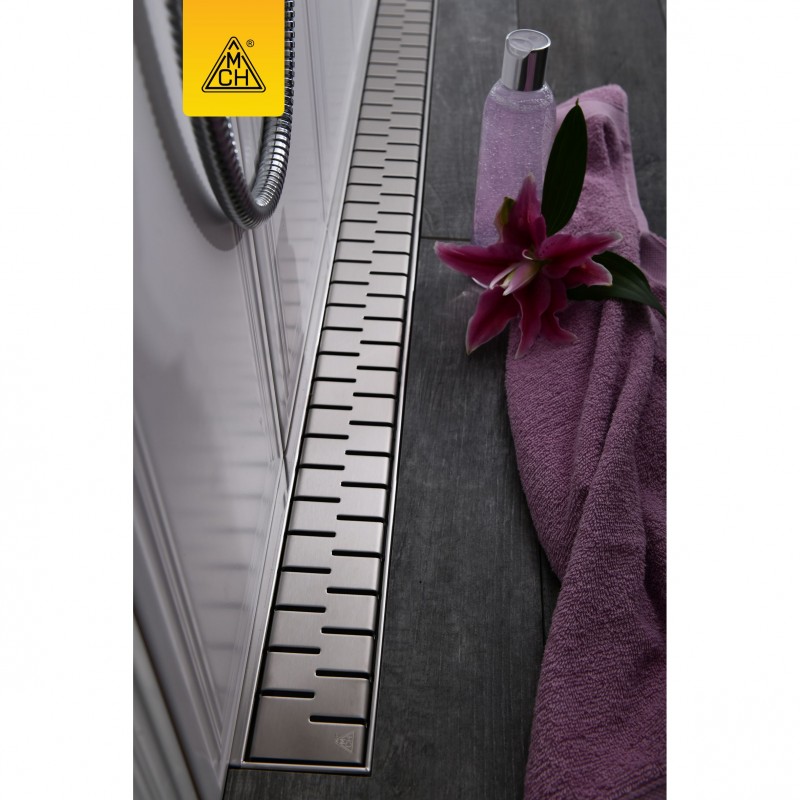 Желоб водосточный МСН является удобной альтернативой для душевого поддона или душевой кабины. Он позволяет сделать душ любой конфигурации и размера. Каналы МСН имеют 14 видов решеток из нержавеющей стали толщиной 1,5 мм. Их непревзойденный дизайн станет ярким дополнением и основой стиля. Благодаря душевым канала МСН можно превратить ванную комнату в дизайнерский шедевр без труда и затрат даже в обычной квартире. Высокая пропускная способность душевых каналов МСН позволяет применять их с любыми типами душевых леек. Уникальная конструкция каналов МСН обеспечивает быстрый и удобный монтаж, а высоту ножек можно легко корректировать сверху даже после установки канала. Фланец по периметру и гидроизоляционная лента позволяют сделать слой надежной защиты от попадания влаги к стяжке.