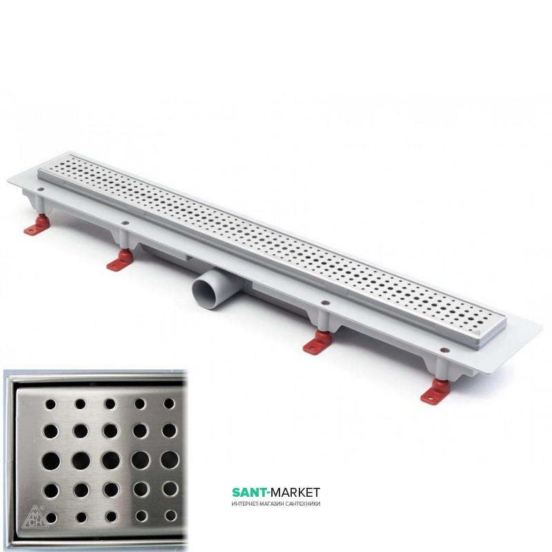 Желоб водосточный МСН является удобной альтернативой для душевого поддона или душевой кабины. Он позволяет сделать душ любой конфигурации и размера. Каналы МСН имеют 14 видов решеток из нержавеющей стали толщиной 1,5 мм. Их непревзойденный дизайн станет ярким дополнением и основой стиля. Благодаря душевым канала МСН можно превратить ванную комнату в дизайнерский шедевр без труда и затрат даже в обычной квартире. Высокая пропускная способность душевых каналов МСН позволяет применять их с любыми типами душевых леек. Уникальная конструкция каналов МСН обеспечивает быстрый и удобный монтаж, а высоту ножек можно легко корректировать сверху даже после установки канала. Фланец по периметру и гидроизоляционная лента позволяют сделать слой надежной защиты от попадания влаги к стяжке.