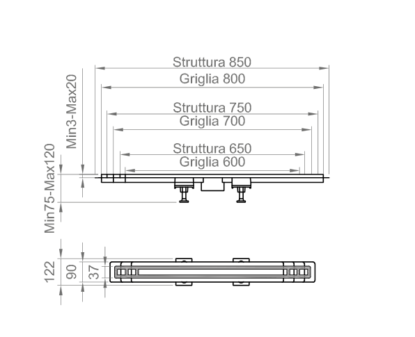 - Двухсторонняя алюминиевая душевая решетка, облицованная плиткой.