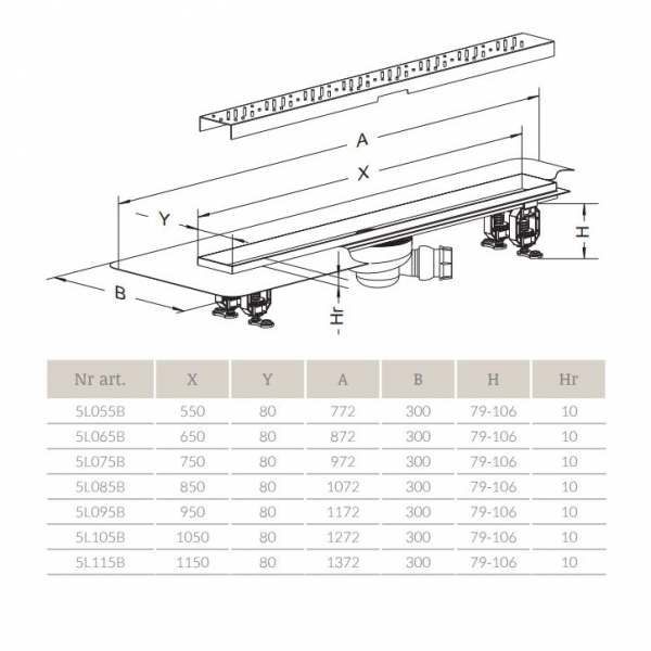 Линейные трапы Radaway характеризует функциональность, благодаря которой вода быстро уходит из поверхности пола а во вторых эстетический вид подходящий любой ванной комнате. Доступны два варианта линейных трапов: — для укладки плитки толщиной 8-12мм (буква А на конце товарного кода) и — для укладки плитки (мозаики) толщиной 5-7мм (буква В на конце товарного кода). Доступны декоративные решетки.