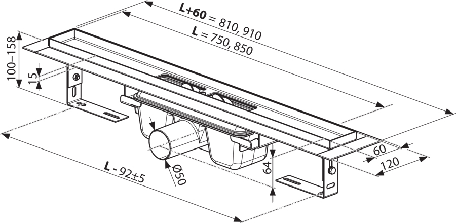 Специальная обработка для предотвращения прилипания грязи. Высота монтирования 100 мм. Душевой канал 75 см подходит для душевых кабин с минимальной шириной 900 мм, а душевой канал длиной 85 см подходит для душевых кабин с минимальной шириной 1000 мм.
