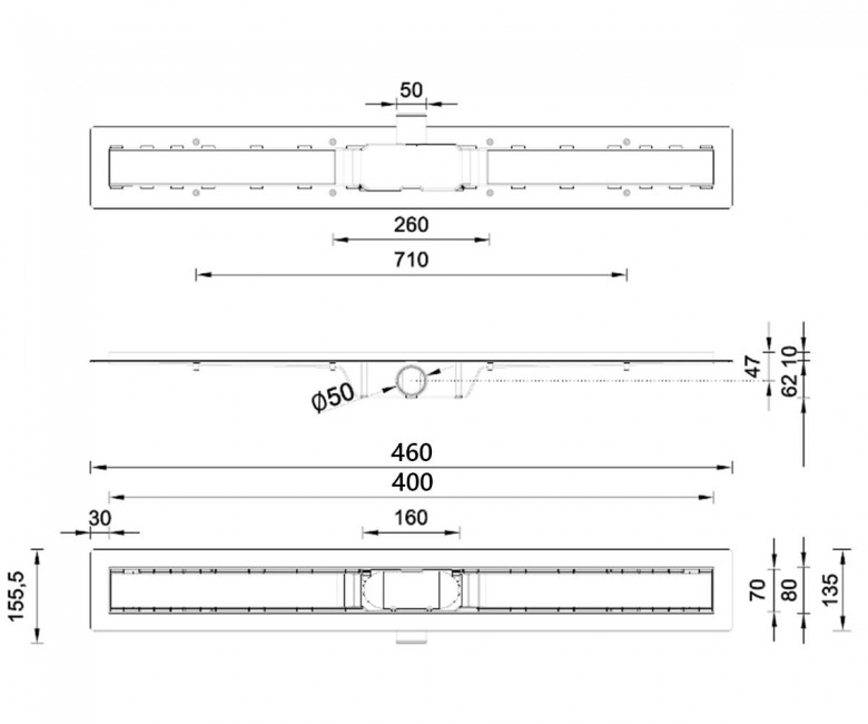 Желоб водосточный Styron с решеткой Klassic 400 мм нержавеющая сталь