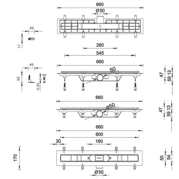 Желоб водосточный Styron с решеткой Line 600 мм нержавеющая сталь STY-Li-60