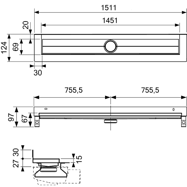 Желоб водосточный TECE TECEdrainline прямой пристенный с гидроизоляцией Seal System 1500 мм нержавеющая сталь