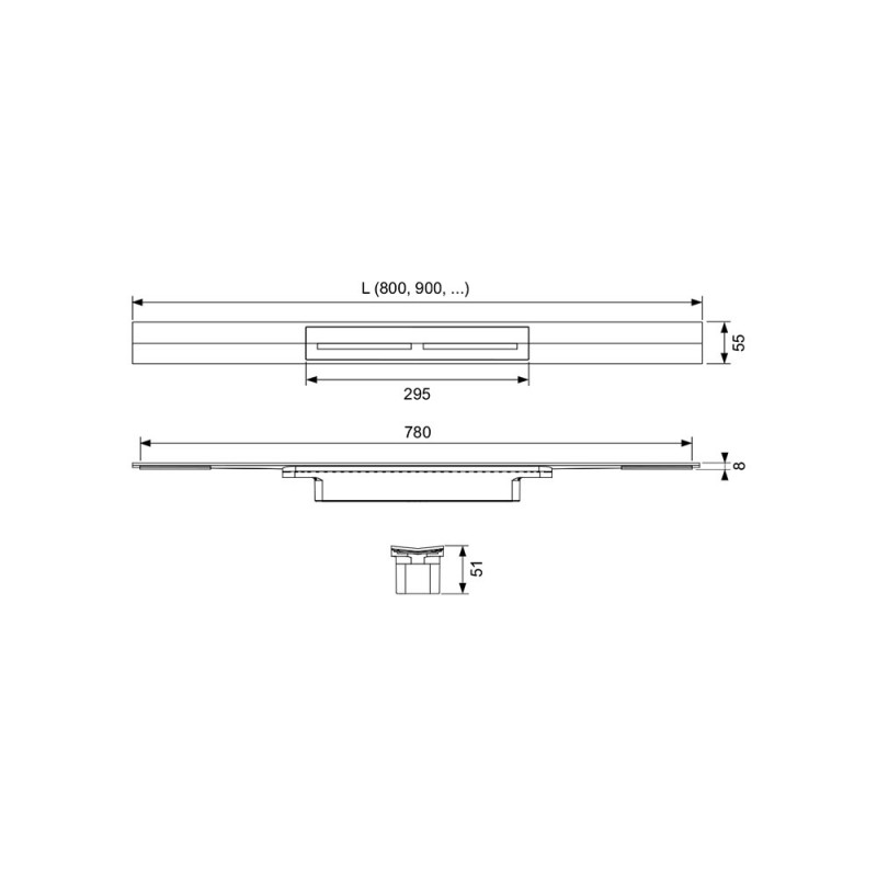 - Душевой профиль, который можно обрезать по длине, с уклоном к центру для улучшения слива воды и самоочищения