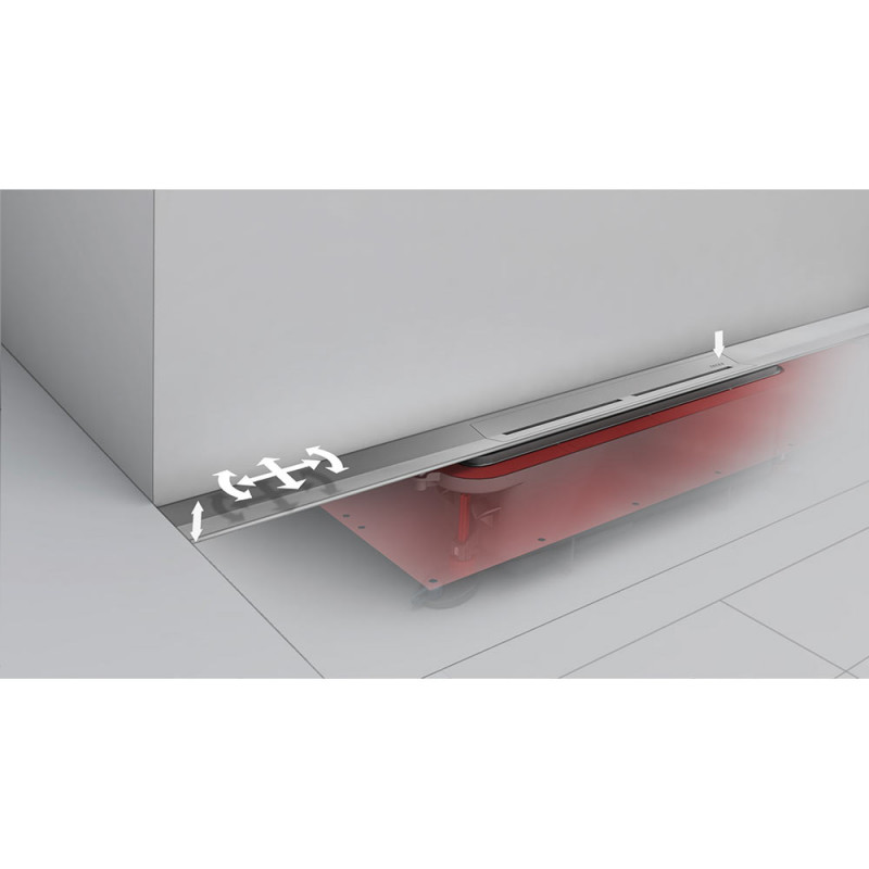 Нажав пальцем на крышку профиля в определенном месте, ее можно снять без использования каких-либо инструментов. Профиль для душевой можно все еще немного сместить по горизонтали и вертикали даже после того, как сифон вмурован в стяжку. Промойте, протрите — сделано! Профиль для душевой из нержавеющей стали легко очищается тканевой салфеткой - в отличие от дренажных каналов для душевых, здесь не надо снимать решетку. Уклон внутри профиля обеспечивает сток воды и создает эффект самоочищения, что приводит также к уменьшению расхода чистящих средств.