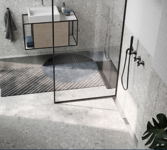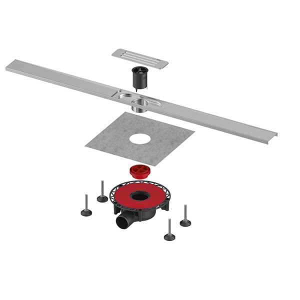 Душевой профиль для дренажа для установки на клей для плитки над стяжкой и композитной гидроизоляцией.